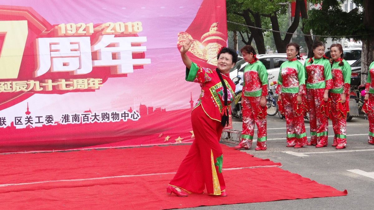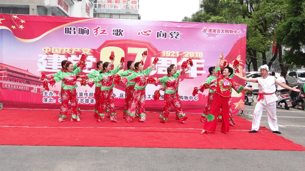 <<山丹丹开红花艳艳>>由淮南市民艺术团舞蹈队编排及演出,获得广大市民的一致好评,并在广场舞大赛中多次获得大奖。
