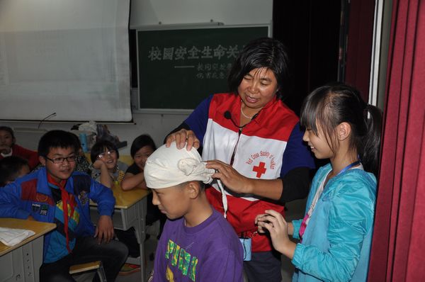 10月15日至17日,淮南市红十字会走进基层中小学,给500多名师生培训突发事件意外伤害现场救护,手把手教授如何利用衣服、红领巾、毛巾、窗帘、书本、报纸、棍棒和双手等身边的东西,在遇到火灾、地震、溺水、踩踏、触电、燃气中毒、交通事故、运动损伤等突发事件意外伤害的现场正确有效地开展自救互救。